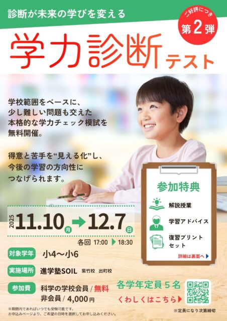 引き続き第2回(11月):進学塾SOIL「学力診断テスト」特別参加のご案内です。