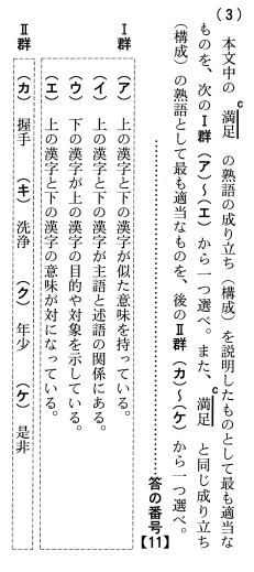 こういう問題こそ小手先のテクニック的なものが一切通用しないTHE国語力。語彙力なんですけど国語力。読解とか関係ないけど国語力。